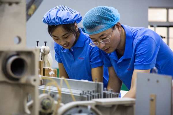“唧唧復(fù)唧唧,木蘭當(dāng)戶織”,如今的紡織工廠里巾幗和須眉同臺(tái)競(jìng)技,姐妹,兄弟,搭檔,師徒,她們和他們一起撐起了一片美麗的天空。