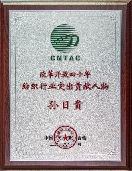 孫日貴董事長是中共山東省第七、八、九、十屆黨代表,山東省第十屆、第十一屆人大代表,先后被授予“全國勞動模范”、“全國紡織企業(yè)家創(chuàng)業(yè)獎”、“山東省優(yōu)秀企業(yè)家”、“濰坊市功勛企業(yè)家”、“首屆濰坊慈善家”、“高密市人民勛章”等榮譽稱號。同期,孫日貴董事長入選中國家用紡織品行業(yè)協(xié)會公布的25位“改革開放40年家紡行業(yè)突出貢獻人物”。附件下載: