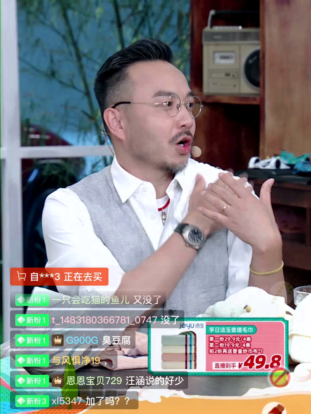 隨后,汪涵終于恢復了知性本色,談起了毛巾的文化淵源。他說,國人使用毛巾類制品的時間是非常悠久的,可以追溯到秦漢時期。從方言中的帕帕、帕子,頭腦風暴到手絹、手巾、直到羽扇綸巾……這時候,助理的一聲驚呼讓汪涵瞪圓了眼睛:上線的五千組毛巾已經賣光了!是的,還沒到價格介紹環(huán)節(jié),就已經被熱情的觀眾搶購一空。吳總現場拍板決定追加一萬組,這樣的一再追加最后到了表態(tài)“只要買,咱就加”,這份基于強大生產能力的豪氣贏得了汪涵雙手點贊。